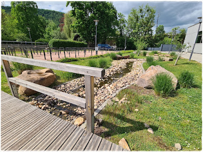 die Wiesen sind wieder grün.. aber es ist immer noch wenig Wasser im Rhein ich wunderte mich über die Leute dort an der Hütte
